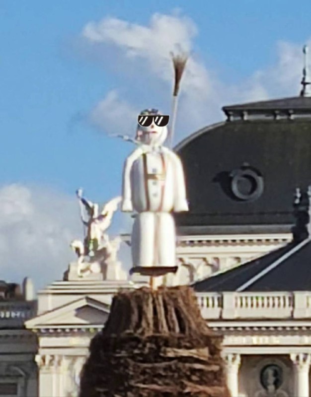 苏黎世每年有个烧雪人节(六鸣节),各个地区穿上传统服饰游行,最后在市中心广场上点火烧雪人,雪人炸的越快表示夏天越长。今年这周一的仪式因为风大,雪人坠落不可控,点火仪式取消了,雪人就活下来了。然后上周还是20多度,今天突然下雪了