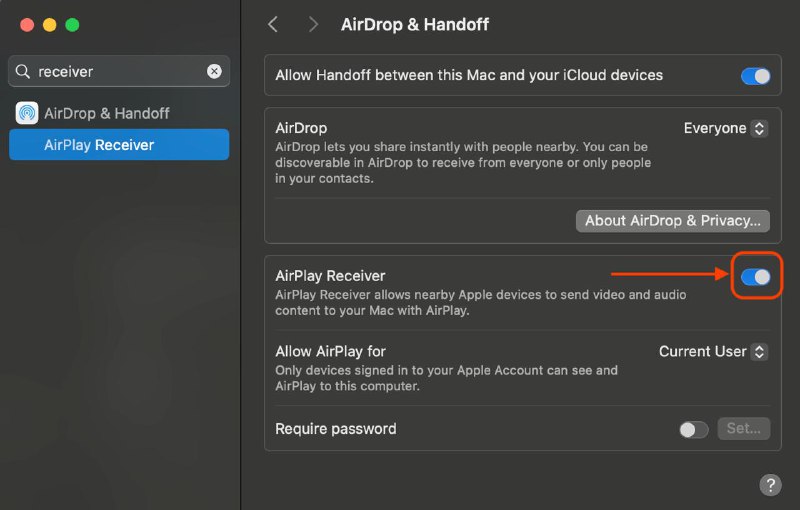 Disable AirPlay Receiver: We recommend fully disabling the AirPlay receiver if it is not in use.