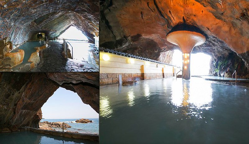 在浦岛酒店的忘归洞第一次体验了日本温泉。我感觉我很幸运,因为我的第一次温泉体验选在了这里。躺在这里的天然洞穴中,就仿佛置身于太平洋的正上方。眼前是太平洋与天创作的极目四望也收不尽的自然画卷,耳畔是海浪拍击岩石永无止息的沉重鼓点